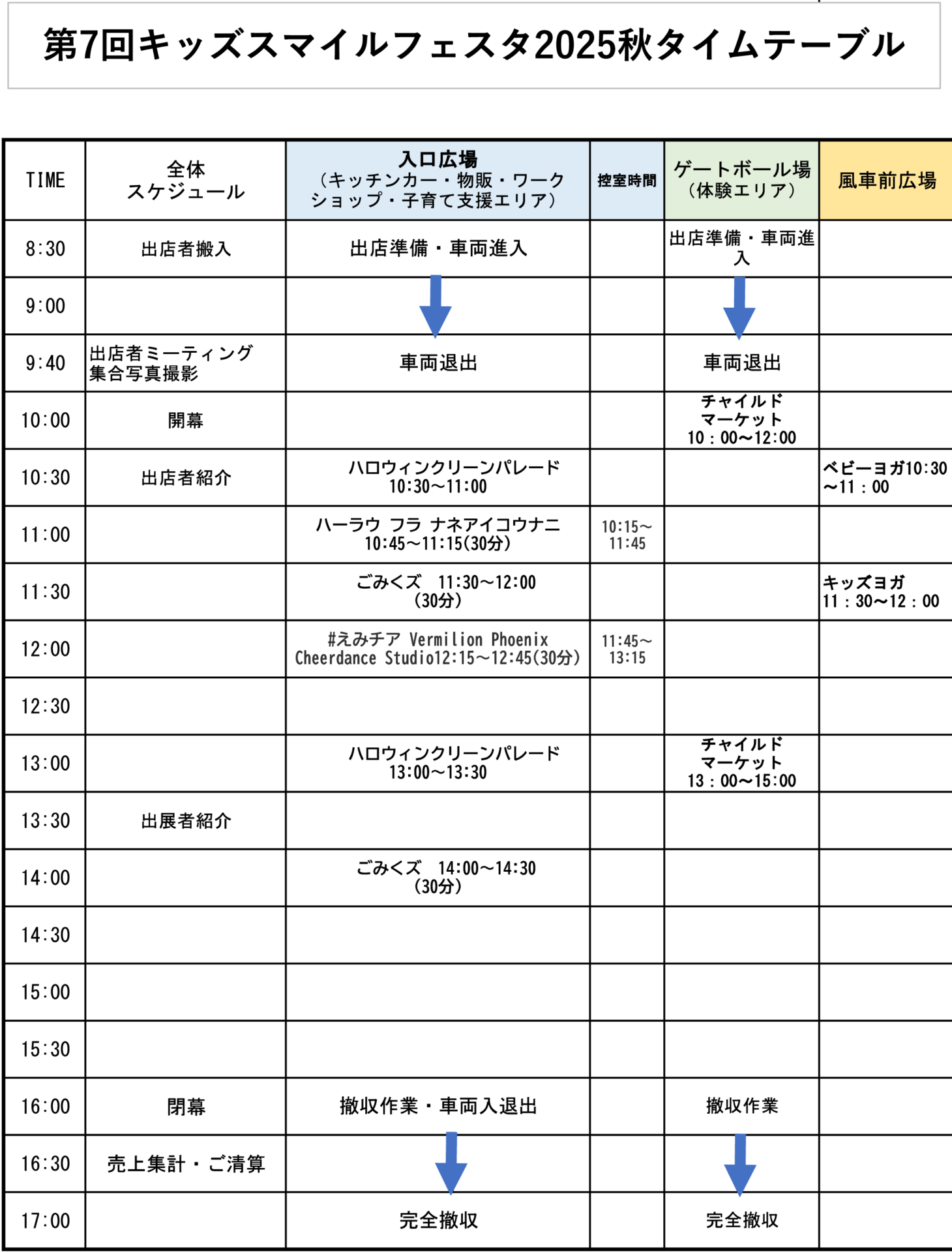 ステージ・体験エリアタイムテーブル