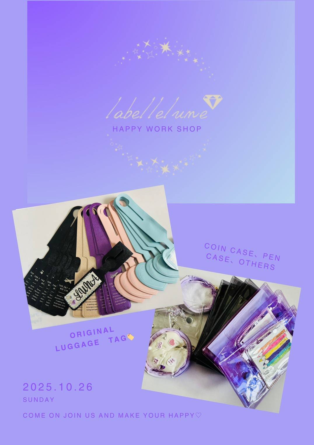 大人も子供も、皆が笑顔になれるhappyワークショップ(luggage tag&ポーチ、ペンケース、ネームタグetc.)✮*。゚