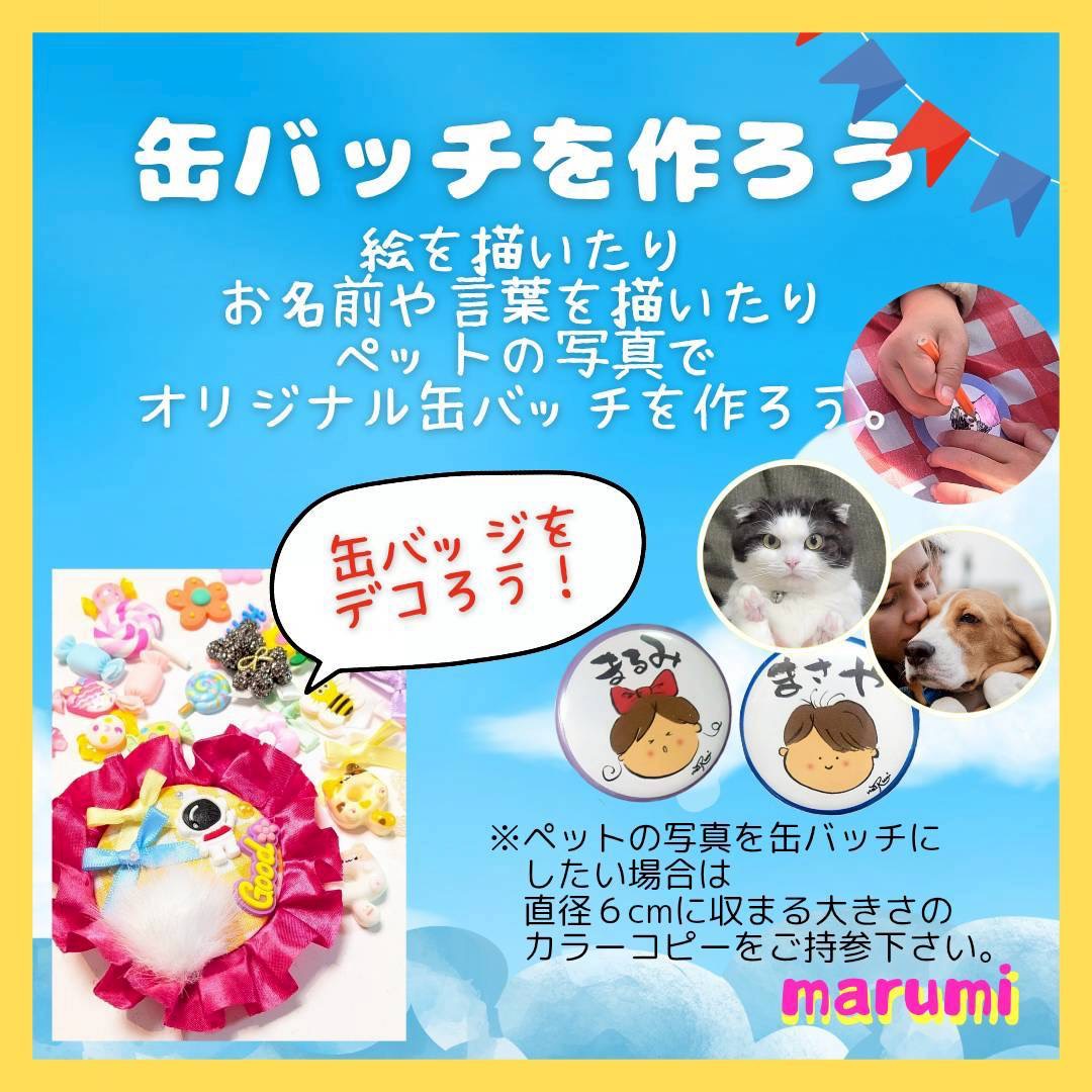 ※直径6センチ以内の写真やカラーコピーをお持ち頂ければ、その場で缶バッジにします。